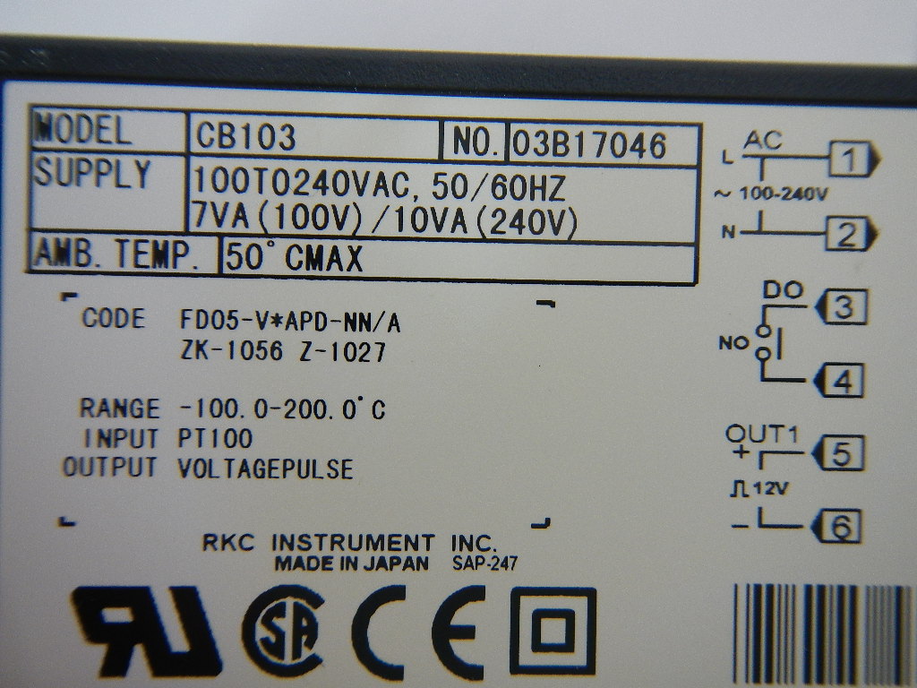 HOME | 中古製品検索 | 中古製品検索詳細 TEMPERATURE CONTROLLER 温度調節器 商品コード 106401 メーカー 理化工業 型式 CB103 FD05-V*APD-NN/A ZK-1056 Z-1027 年式 0 ワークサイズ サイズ 0-0-0 仕様 この製品のお問い合わせ