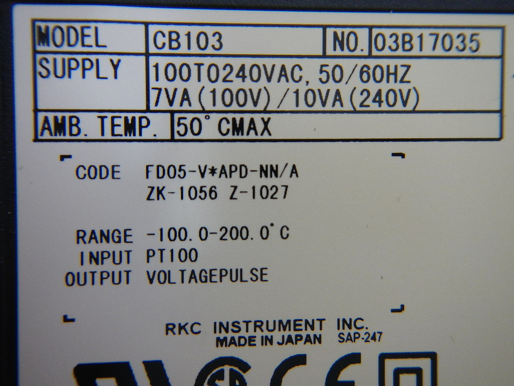 HOME | 中古製品検索 | 中古製品検索詳細 TEMPERATURE CONTROLLER 温度調節器 商品コード 106410 メーカー 理化工業 型式 CB103 FD05-V*APD-NN/A ZK-1056 Z-1027 年式 0 ワークサイズ サイズ 0-0-0 仕様 この製品のお問い合わせ