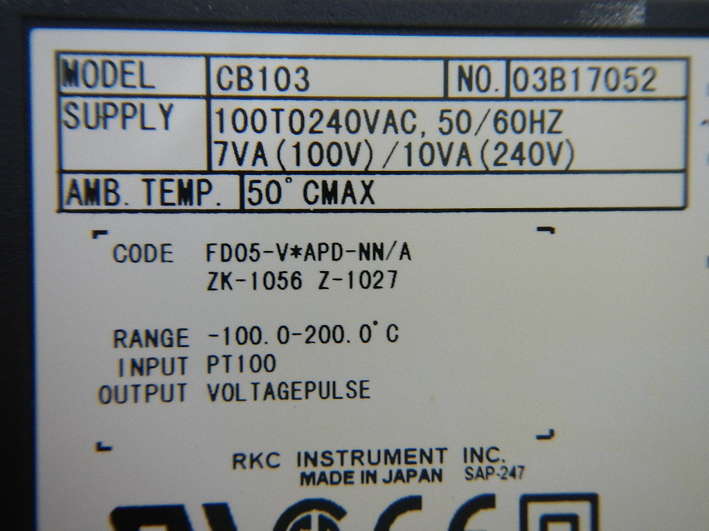 HOME | 中古製品検索 | 中古製品検索詳細 TEMPERATURE CONTROLLER 温度調節器 商品コード 106416 メーカー 理化工業 型式 CB103 FD05-V*APD-NN/A ZK-1056 Z-1027 年式 0 ワークサイズ サイズ 0-0-0 仕様 この製品のお問い合わせ