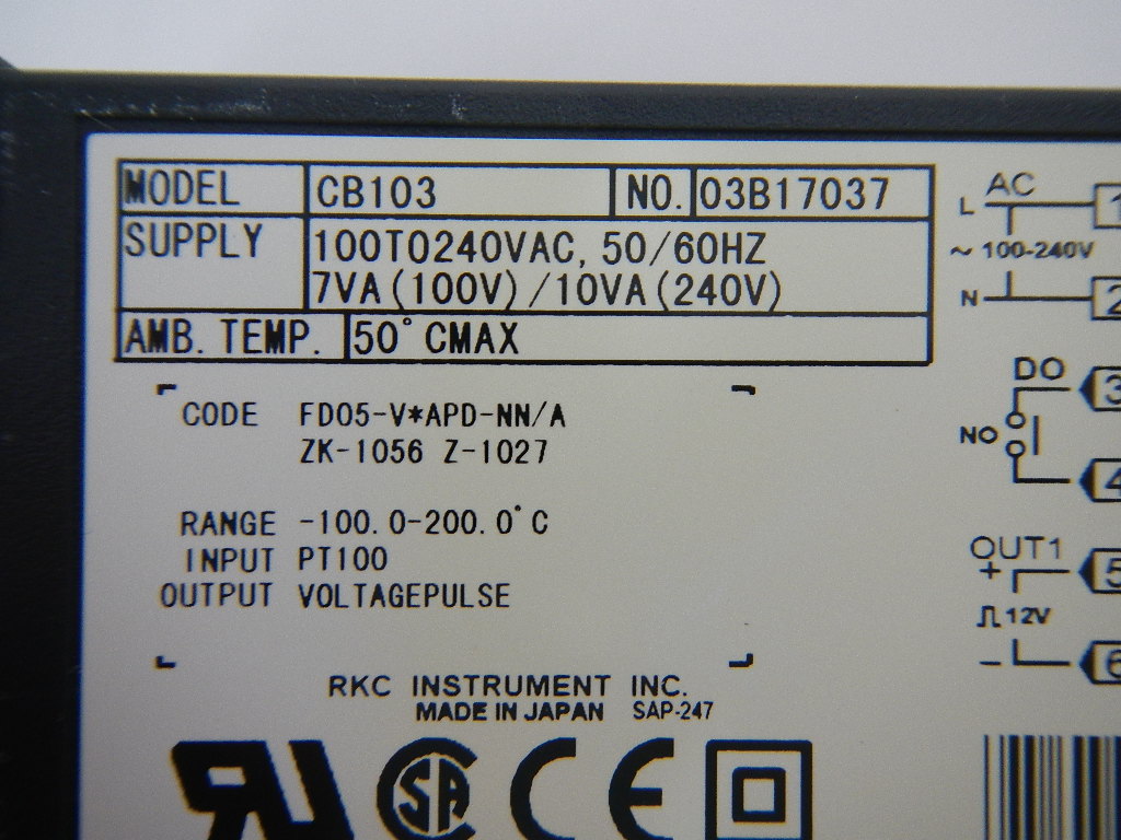 HOME | 中古製品検索 | 中古製品検索詳細 TEMPERATURE CONTROLLER 温度調節器 商品コード 106420 メーカー 理化工業 型式 CB103 FD05-V*APD-NN/A ZK-1056 Z-1027 年式 0 ワークサイズ サイズ 0-0-0 仕様 この製品のお問い合わせ