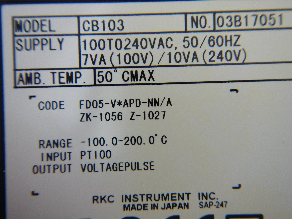 HOME | 中古製品検索 | 中古製品検索詳細 TEMPERATURE CONTROLLER 温度調節器 商品コード 106434 メーカー 理化工業 型式 CB103 FD05-V*APD-NN/A ZK-1056 Z-1027 年式 0 ワークサイズ サイズ 0-0-0 仕様 この製品のお問い合わせ